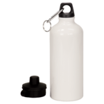 20 oz White Aluminum Water Bottle. Water bottle is 7" (H) without the lid. Includes two lids (on screw lid, one flip-top lid). Includes one carabiner with a key ring. After sublimation, attach self-adhesive black foam pad (included).
